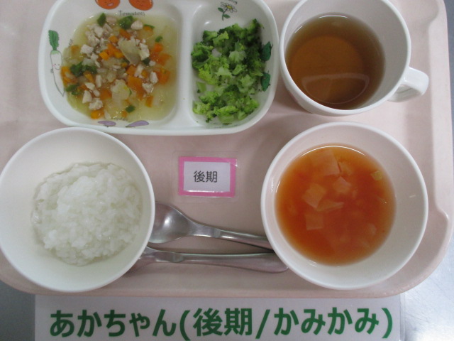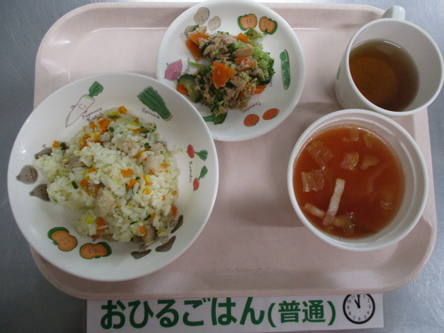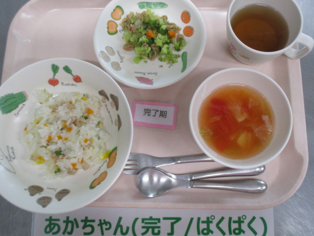 ★6/26(木)今日の給食・おやつ★ 2025/06/26 ★本日のメニュー★ ◆◆◆給 食◆◆◆ ピラフ ツナサラダ ABCスープ ————————————— ◇◇◇おやつ◇◇◇ 牛乳 ごまスコーン ================================ ★離乳食のメニュー★ (※完了期食・・軟飯+幼児メニューに同じ) ◆◆◆給 食◆◆◆ <後期食> お粥 そぼろ煮 茹で野菜 トマトスープ ◇◇◇おやつ◇◇◇ 麦茶 青のり粥