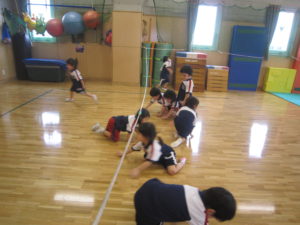お友達に負けて悔しがったり元気一杯応援して顔が真っ赤になったり給食前まで汗をたくさんかきながら遊びました!