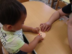 1歳児さんは、おめめとお口のシール貼りも行いました。