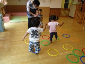 ケンケンパーのリングを使っての両足ジャンプも人気です。