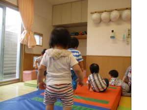 続いて、マットをつなげて歩いてみたり、端から端までハイハイしたり!