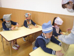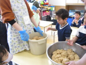 おみそはしばらく暗くて涼しいお部屋でおやすみし、食べるのは「おにぎりづくり」の日です。「あーまだお米つくってなかったぁ」来月から田んぼが始まります、たくさんの楽しいことが待ってるね♡