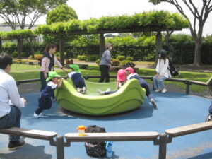昨日の雨も上がり3年ぶりの親子遠足を開催することができました。「お弁当はから揚げだよ」「おやつは持っていっていいの?」「鬼ごっこしようよ!」と、しおりが配られた日から、今日の日をずっと心待ちにしていたおともだち♪ レクリエーションをしたり、遊具で遊んだり、いつも遊びなれた公園も今日は一段と輝いて見えました☆ そしてみんなで食べるお弁当は最高‼‼ お仕事の調整やお弁当の準備など、ご協力いただきありがとうございました。