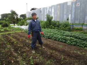▼掘り方を教えてくれた園長先生。農家さんのような風貌!