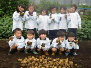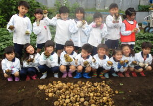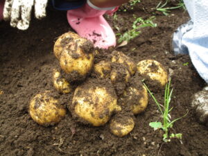 今日とれたじゃがいもは、来週20日のカレー会でいただきます。みんなで美味しいカレーに変身させようね。