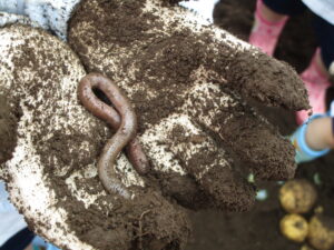 ▼土の中には大きなミミズ。お邪魔しました~(>_<)