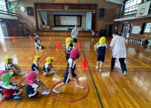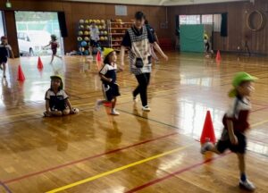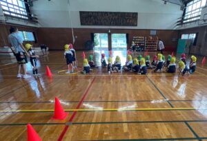 9/4(月)【わくAB】<行事>もうすぐ運動会!! 2023/09/04 今週土曜日は運動会。会場は秋葉台小学校体育館です。 今日は午後から小学校体育館をお借りし、わいわいチーム・どきどきチームのリレー対決。本番さながらの気合いがこもったとても良い勝負でした。 ◆◆おうちのかたへ◆◆ 靴のサイズ、帽子のゴム・・・本番に向けて今一度ご確認くださいね。 主任保育士 戸倉