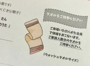 ▼プログラムにも記載がありますが、「ご家族人数分のウォッシュタオル」をお忘れなく!!