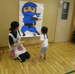 ”しゅりけん忍者” を踊ったあとは、”忍者修行サーキット” に挑戦。全員無事に忍者修行クリア!!
