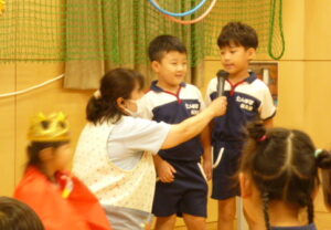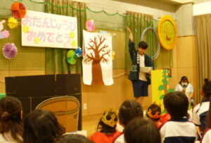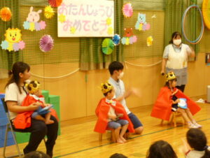 9/26(火)【全クラス】9月おたんじょうびかい☆ 2023/09/26 空が青く高くなって、ようやく暑さが和らぎましたね。 今日は9月生まれのお友だちの誕生会をおこないました。保育者からの出しもの『【劇】はなさかじいさん 』~かれきにはなをさかせましょう~ 楽しかったかな。 素敵な一年になりますように。 ▼今月は3名のお友だちです。 ▼質問コーナー「好きな給食は何ですか」 ▼劇「はなさかじいさん」 担当 鈴木