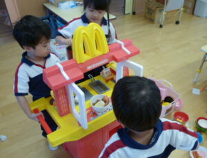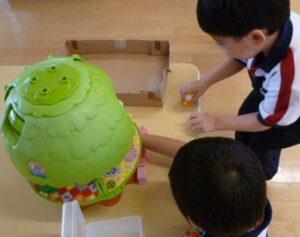 普段使ったことのないおもちゃにみんな大興奮。「そろそろ片付けるよ」の声掛けに「えー!」「はやいよー」と不満の声の大合唱でした。