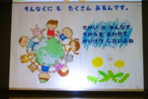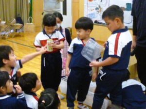今日はその復習と、11月7日のエコキャップお届けに向け、みんなで集まって、●自分たちで拾ったゴミの分別  ●エコキャップの行方について・・・を話し合いました。