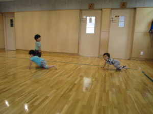 ひろ~いホールに嬉しくなってハイハイレースも始まりました。