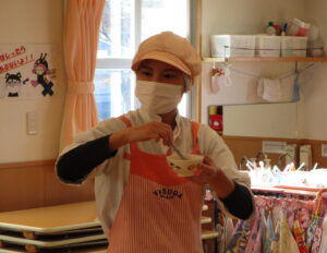 今日のおやつは、田んぼをお借りしている須田牧場の須田様よりいただいた【米粉】を使ったクッキングを行いました。