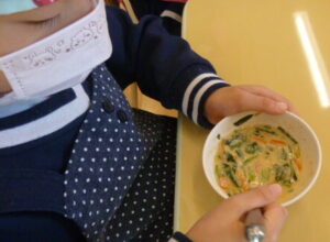 B組さんは、今日のチヂミで今年度のクッキングはおしまいです。全部で5回。クッキングの準備や後片付けをしていただいた給食の先生にお礼のご挨拶をしました。