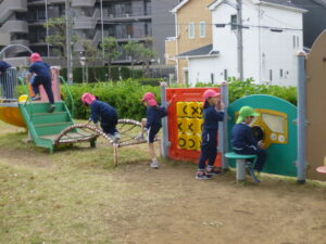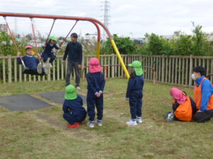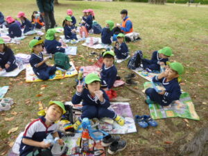 おまいりの後、C組さんは帰路に着き、AB組さんは近くのなかむら公園へ。たくさんの遊具で遊んだり、みんなで花いちもんめを楽しんだあとは、お待ちかねのお弁当タイム!! おともだちの笑顔がさらに溢れた時間でした。