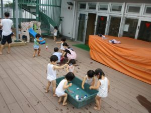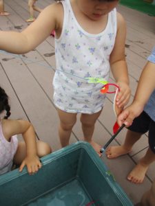 魚釣りをしているうちに、自分も泳ぎたくなったのか