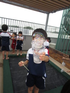 「おもしろーい!!」と、その後はみんなでたくさん泡を作って遊んでいました。