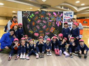 今日の様子は動画配信アプリ『てのりの』にもアップしています。ブログやてのりのでもこの作品の可愛らしさと学生さんの頑張りは感じていただけるかと思いますが、実物には敵いません。子どもたちも「おうちの人にも見てもらいたいな~」と。展示期間が3日間(~12/13(水)まで、明日まで)と短めですが、ぜひ現地でご覧いただけたら嬉しいな~と思います。