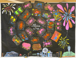 9月21日におこなった慶応義塾大学湘南学祭実行委員の皆さんによる【出張お祭り隊】(こちら)。そのとき作成した『手形アート』。どんな作品になるのか楽しみにしていました。そして昨日から湘南台駅地下アートスクエアにて展示されています。