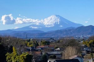 画像・・・園長撮影の【お正月の富士山】。以前知り合いのかたに「ここで毎年お正月に富士山撮るんだ」と画像を見せていただいたことがありまして。それを覚えていた園長が、「その撮影スポット見つけちゃった~」と、持っていたスマホで撮ったようです。