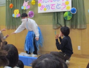 年明け最初の誕生会は、げんきに歌う園歌で気持ちのよくスタート!!保育者かたの今月の出し物は『うらしまたろう』。わくわくC組さんが生活発表会で行った演目のため覚えているお友だちがたくさん。楽しかった思い出を振り返ることができる良い機会になったかな、そうだったら嬉しいなと思っています。