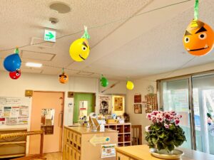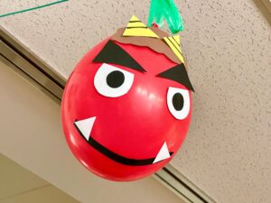 今日は節分。土曜日のため、保育園の集会は昨日開催(こちら)。平日よりちょっぴり静かな保育園の中で、玄関の鬼がゆらゆら揺れています。