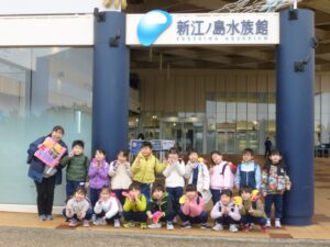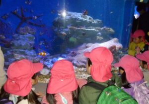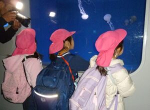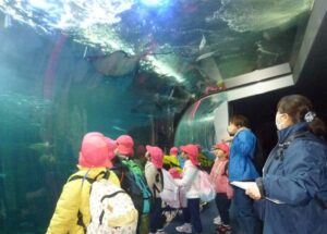 今日はA組さんのおわかれ遠足。朝の雨も上がり、レインコートに袖を通すことなく、今年度の目的地【新江ノ島水族館】へ到着することができました。