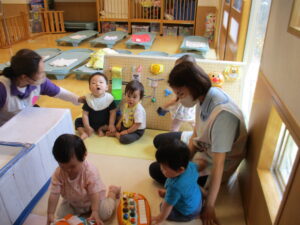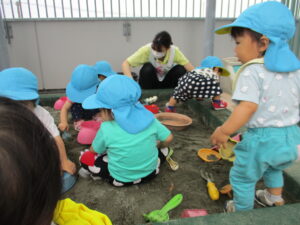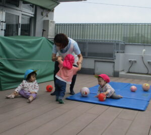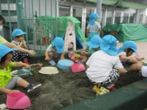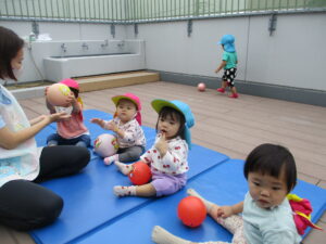 5/23(木)【ぽかぽか】<戸外あそび>お砂場・テラス遊び♪ 2024/05/23 今日はみんなの大好きなお砂場で遊びました。一度お砂場に腰を下ろすと、その場から移動しなくなるほど集中してじっくり楽しんでいたお友だち。 低月齢のお友だちはテラスでボール遊びを行いました。ハイハイでボールを追いかけたり、手を叩いてボールを呼んだり、すっかりボールとお友だちです! ▼今日は何を作ろうかなぁ? ▼ボールまてまてー!! ▼食事の後の、のんびりタイム☆ ぽかぽか 大竹・南井