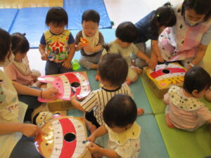 今日4日~10日まで【虫歯予防週間】です。ぽかぽか組では『バイ菌バイバイゲーム』を行いました♪