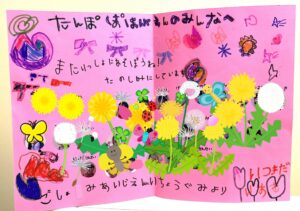 ※実物は、お友だち全員と担任の先生のお写真が入っています。(他園のお友だちのお写真なので、その部分はたんぽぽにしてアップさせていただきました)