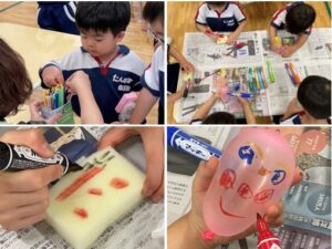 今日は幼児クラスみんなで【夏のワークショップ】。 ~思いっきり夏を楽しもう!!~をテーマに、2グループに分かれて夏の製作&プール遊びを行いました♪