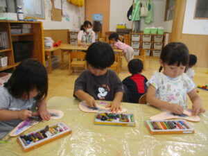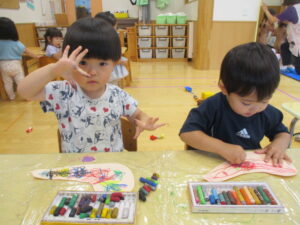 何色にしようか悩んでいるお友だちには ≪どんないろがすき» を歌い始めると不思議なことに何色にするか決まりました♪