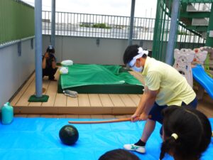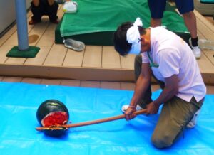 ▼スイカ割り…割れたのはだれかな?