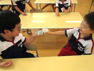 ▼A組さんは教えあいながら作り、最後はかんぱ~い♪