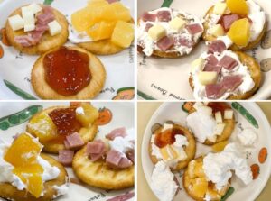 各々自分の好きな具材をクラッカーに乗せ、ちょっと欲張ってはみ出したり、控えめに乗せたり、サンドしたり・・・自分だけのお月見カナッペを作ることができました。