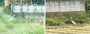 うちの田んぼにも今日、サギグループではなくサギカップルが来ていました。このサギカップルの狙いは金品ではなく、イナゴとかカエルとか落穂とかってのがなんとも!笑