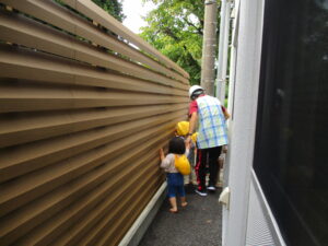 今年度初めての屋外避難でしたが、「上手に避難できているよ!」と消防士さんに褒めていただき、嬉しそうなお友だち。避難訓練のときの合言葉【おかしも】は、災害時に役に立つとってもとっても大事なコトだから絶対に忘れないでね!と改めておやくそくをし、憧れの消防車の前でお写真を撮らせていただきました。