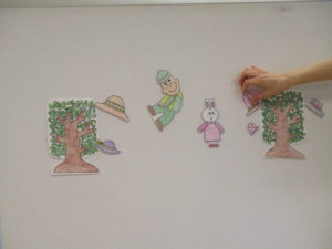 今日のパネルシアターは 『 すてきな帽子屋さん 』 。