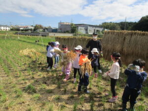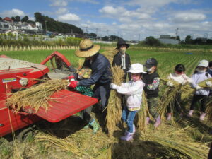雨続きのため延期になった【脱穀】。三連休は秋晴れが続き、今日無事に実施することができました!