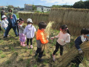 日差しが強い中での作業でしたが、弱音を吐かず一生懸命取り組むみんなの姿がとてもたくましく見えました。好奇心旺盛がゆえに、あっちへこっちへと元気にとびまわり、それがいきすぎてしまうことが心配になることもあるA組さんですが、このような特別な行事にしっかりと向き合えることは素晴らしいことですので、普段の生活の中でも集中して取り組むことができるよう、就学に向け、残り5カ月半、子どもたちの手助けをしていきたいと思います。