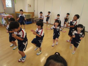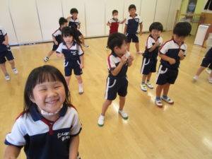 今日は朝の会の後の体操が終わっても「ほかのもやりたーい」「もっとやるー!」とやる気満々の子が多く、その後3曲踊りました!