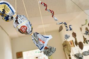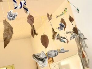 ▼わくわくA組さんが作っていたハロウィンのガーランドに憧れて始めた『新聞ガーランド』作り!ヘビやアメ、おばけちゃんがいますよ♪
