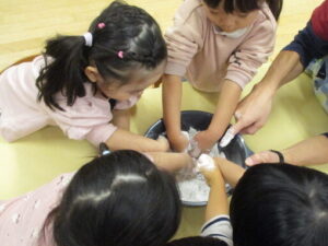➁『感触』を確かめる・・「サラサラ~」「てにくっついた!」