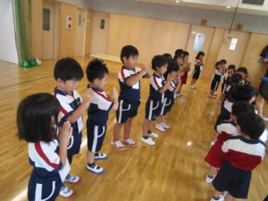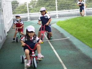 「せんせい!きょうそうしよう!」とお友達が話してきたことをきっかけに突然かけっこの大会を開催!「つぎはぼく!」「わたしも!」と、3人ずつで競争していました!勝っても負けても笑顔を見せていた子どもたち!微笑ましかったです。