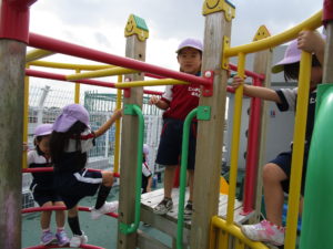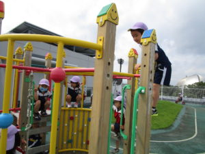 夏の間は熱くて触れなかったアスレチックも遊べるようになって子ども達は大喜び!