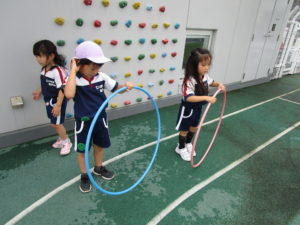 大好きな自転車やフラフープも出して遊びました。
