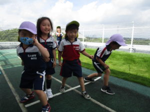 屋上で遊んでいたあとは、英語の時間。
