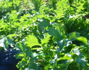 大きい葉をかき分け確認すると、白い大根の姿を発見!! 来週17日(火)の大根抜きが楽しみです。