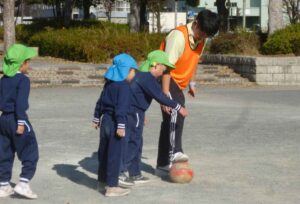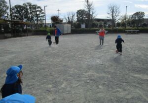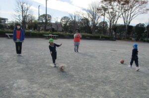今日はベルマーレサッカー教室の予定でしたが、都合により12/20(金)に変更になったため、秋葉台公園の広場でサッカーをやりました。一生懸命ボールを追いかけるみんなと一緒に、保育者もとても楽しくサッカーができ、充実感いっぱい!こんなに広い公園が目の前にあり、たくさん遊ばせていただけることを、本当にありがたく思います。